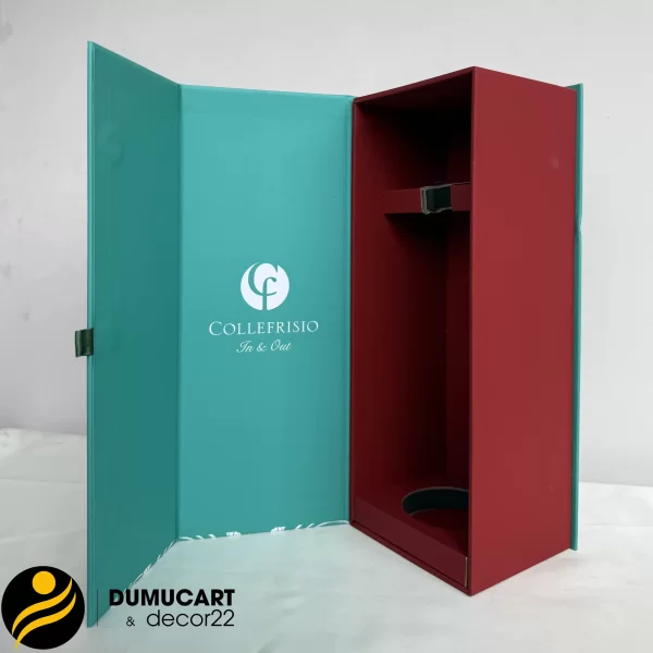Đây là dòng sản phẩm đòi hỏi kỹ thuật gia công cao. Hộp giấy cứng kết hợp foam lót giúp cố định chai, tạo cảm giác cao cấp ngay khi mở.
